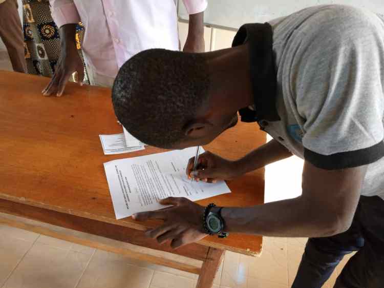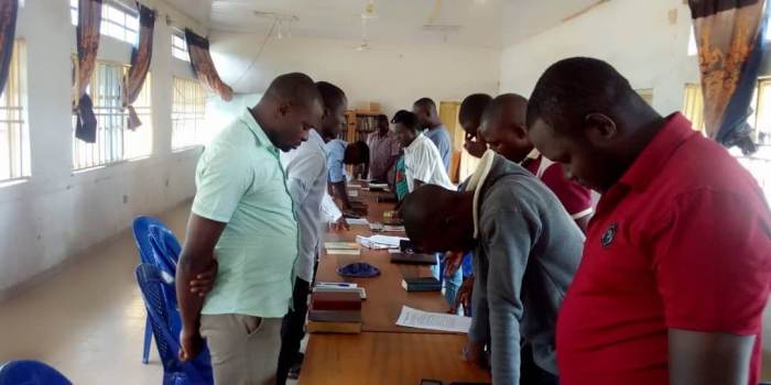 Presentation and signing of MAFEELDA college tuition scholarship award letters and checks to 10 orphans/fatherless by Mr. Paul Meringolo from New York in the month of November 2019. The beneficiaries are also seen praying and praising God for the offer.