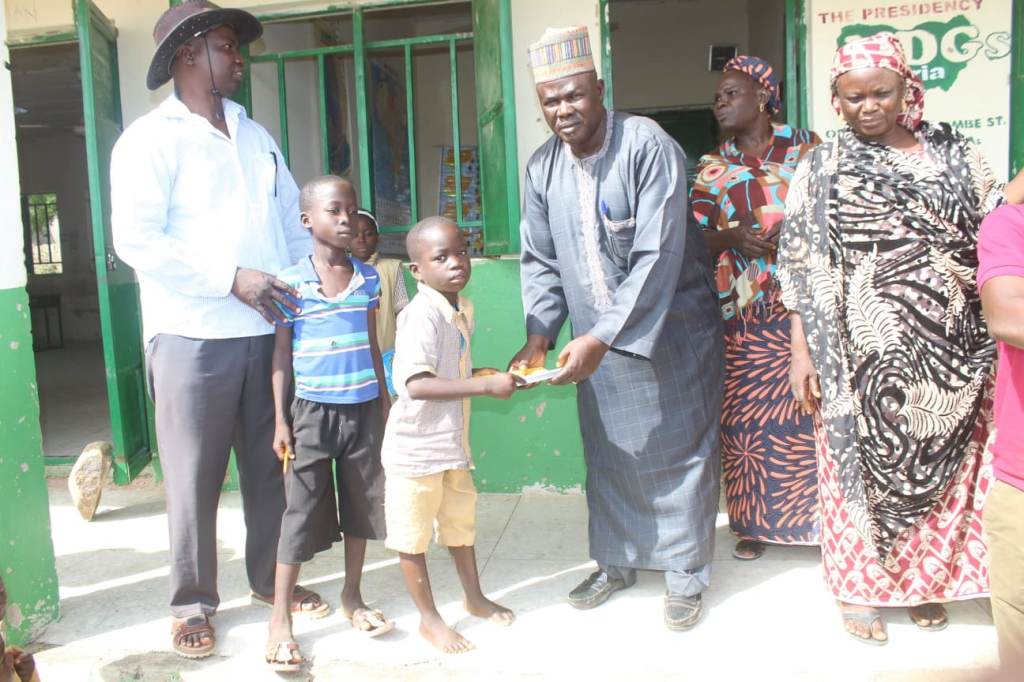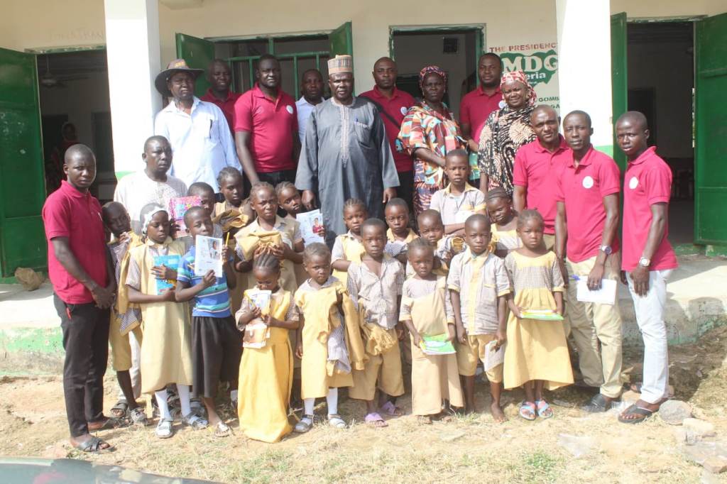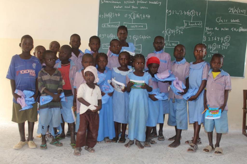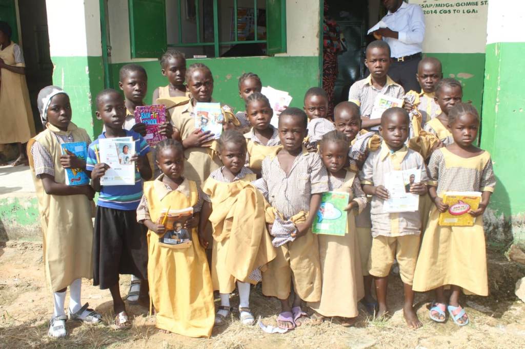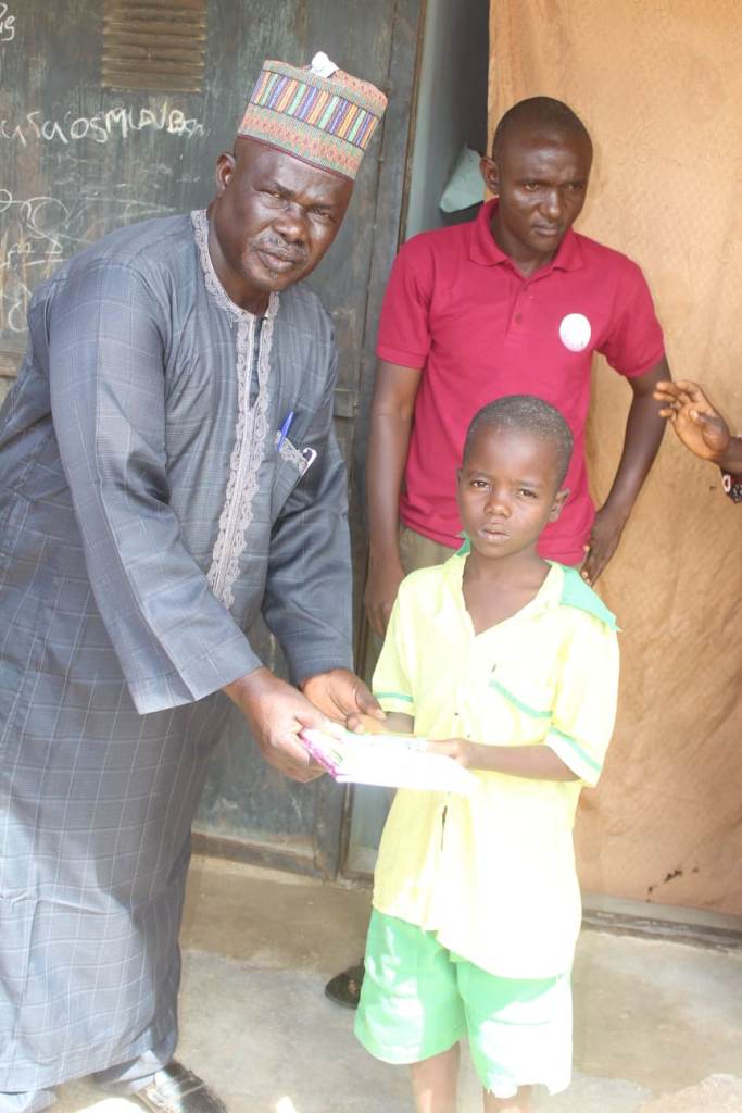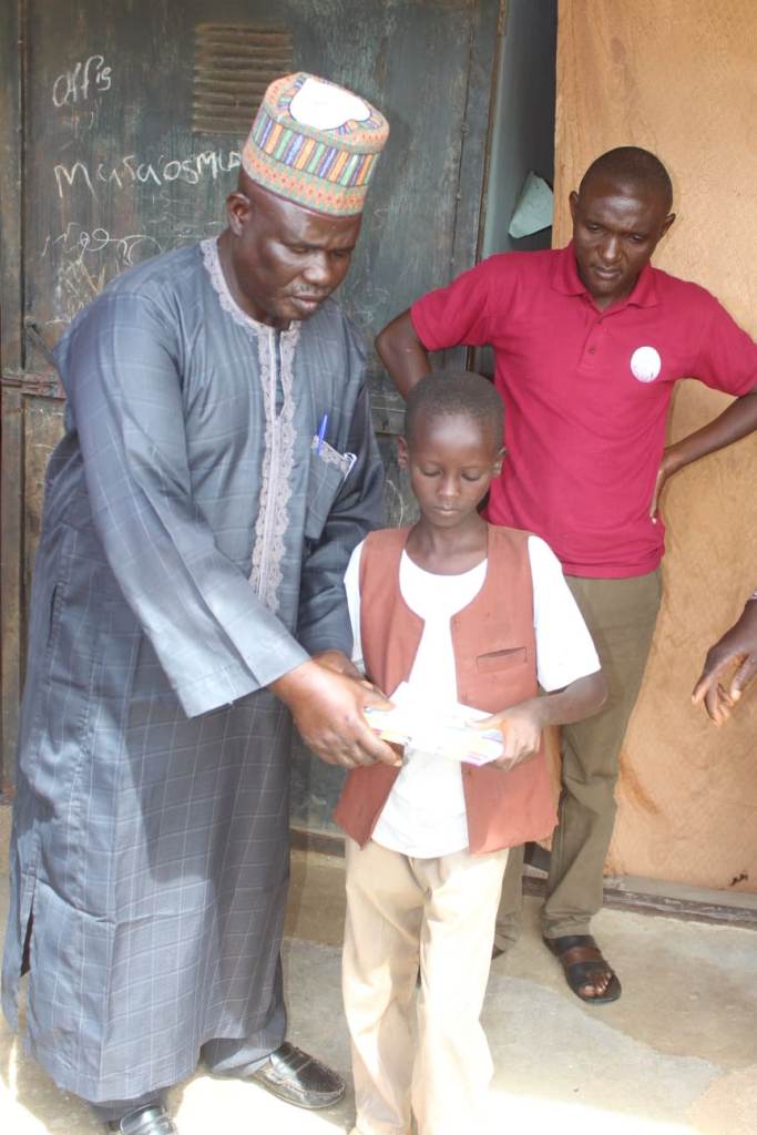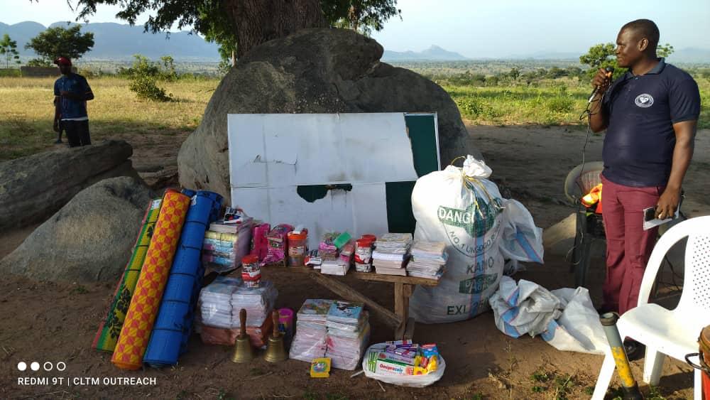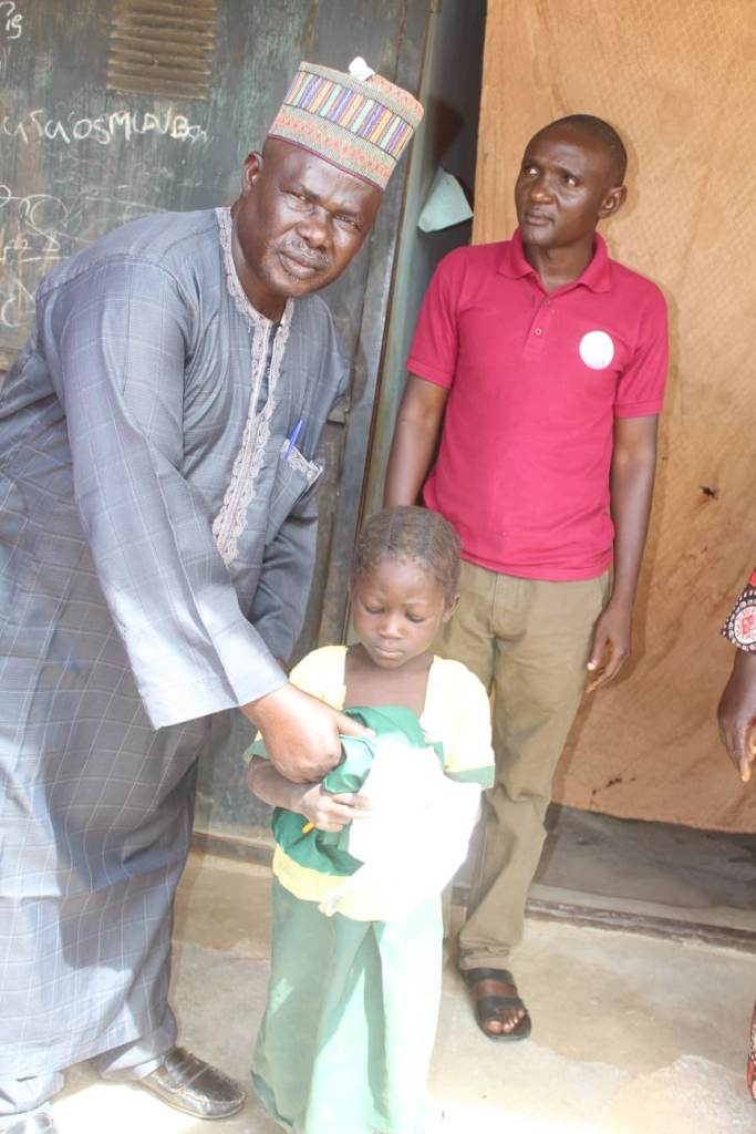 f) So far, CLTM has provided several school supplies and other items as follows: 6 pieces of Mats, 2 school bells, 160 pieces of exercise books, 4 packets of pens, 2 packets of pencils, 2 packets of sharpeners, 2 packets of erasers, 1 big sized whiteboard, 2 packets of whiteboard markers, 2 pieces of wooden blackboards, 3 packets of chalks, 3 dusters, 4 packets of pencils, 1 packet of ruler, 10 pieces of school report books, 2-baco bags filled with cloths, and first aid drugs for treating malaria, typhoid, cough, ringworm, ulcer, diarrhea, and body pains worth N17, 500.