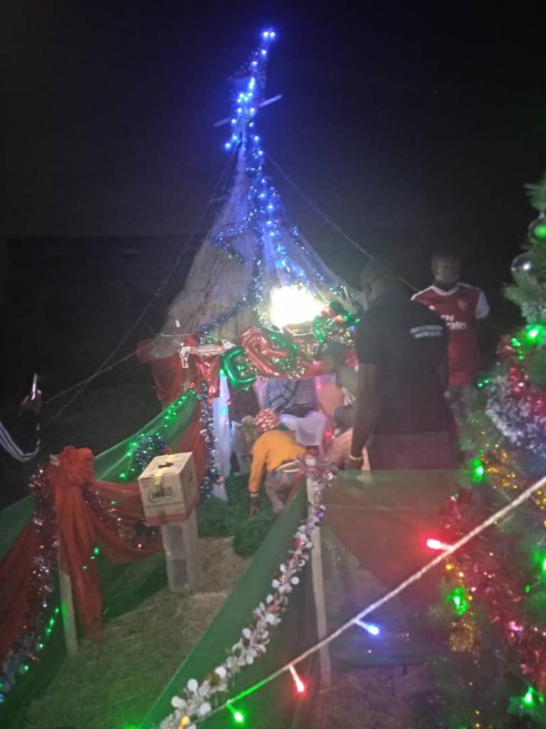 b) The event was aimed at reaching out to people with the Gospel of Jesus through a simulation of the Birth of Jesus’ experience. The simulation included: the Star of Bethlehem leading people to the Baby Jesus home, the Magi, Mary and Joseph, and the Baby in a manger inside a thatched house.