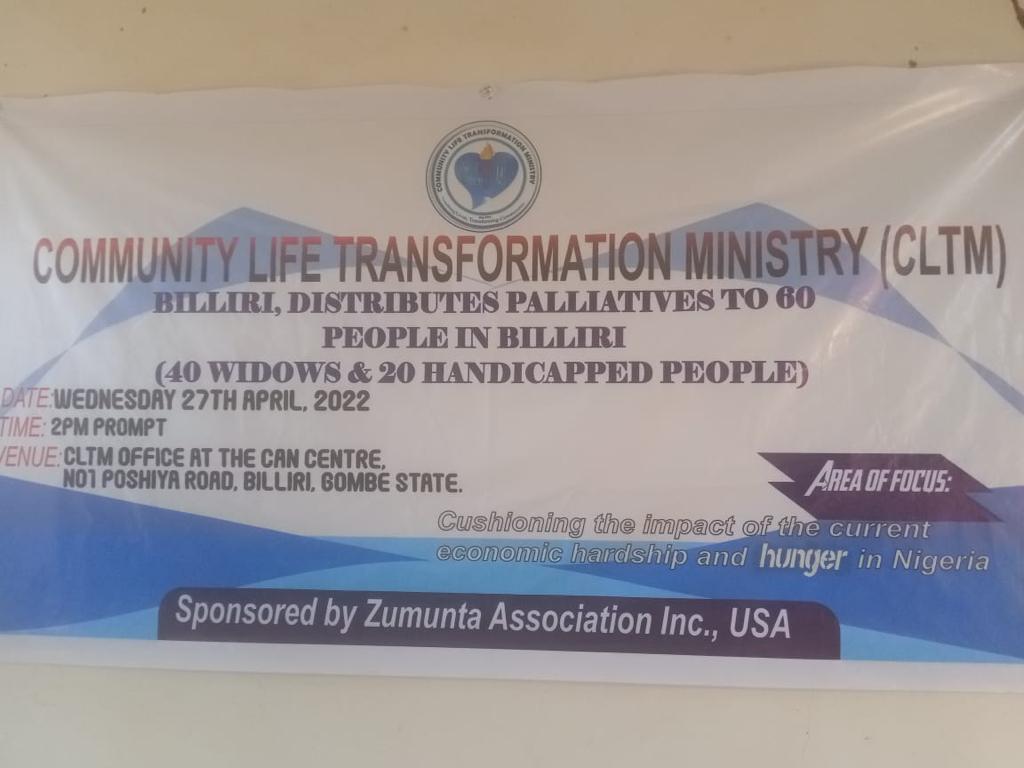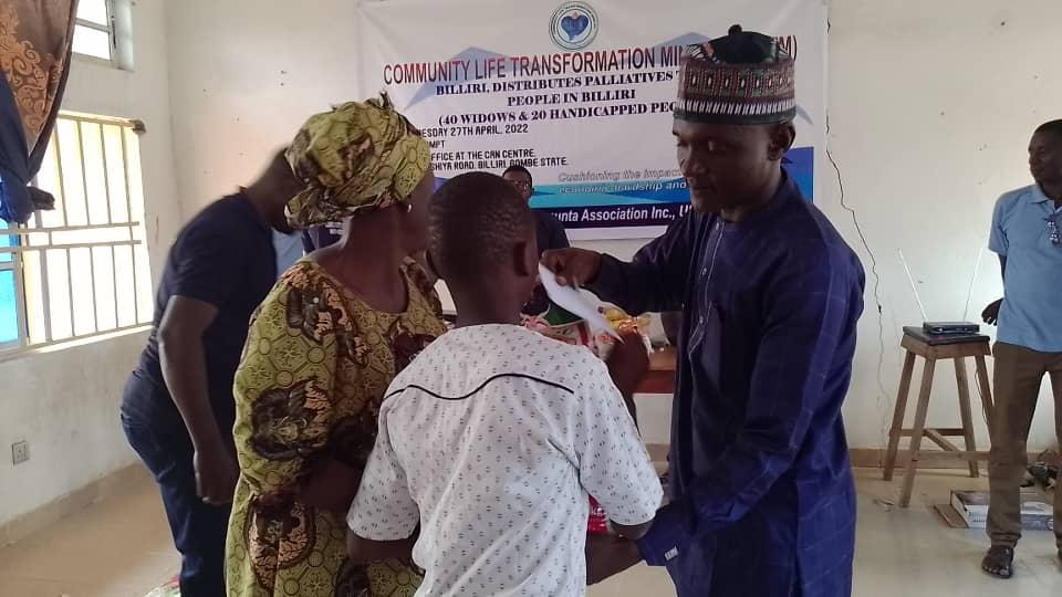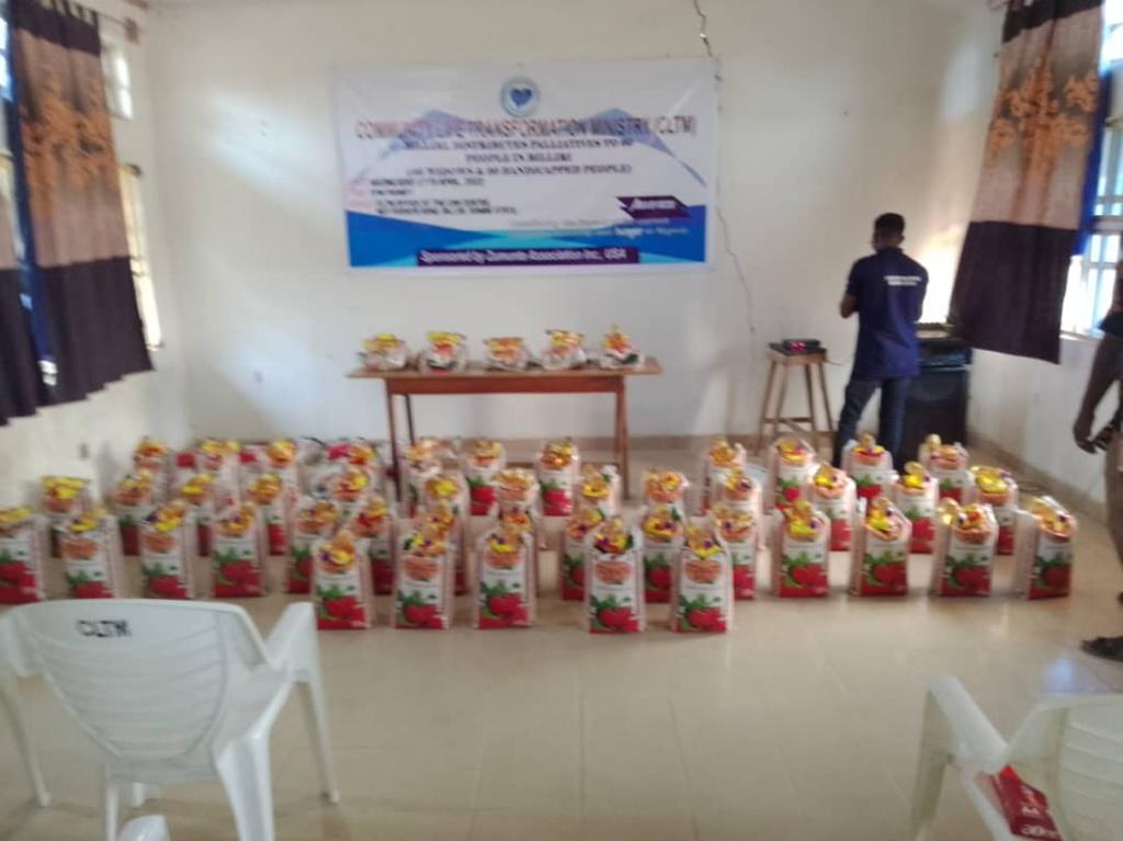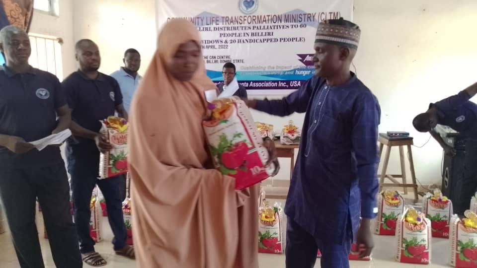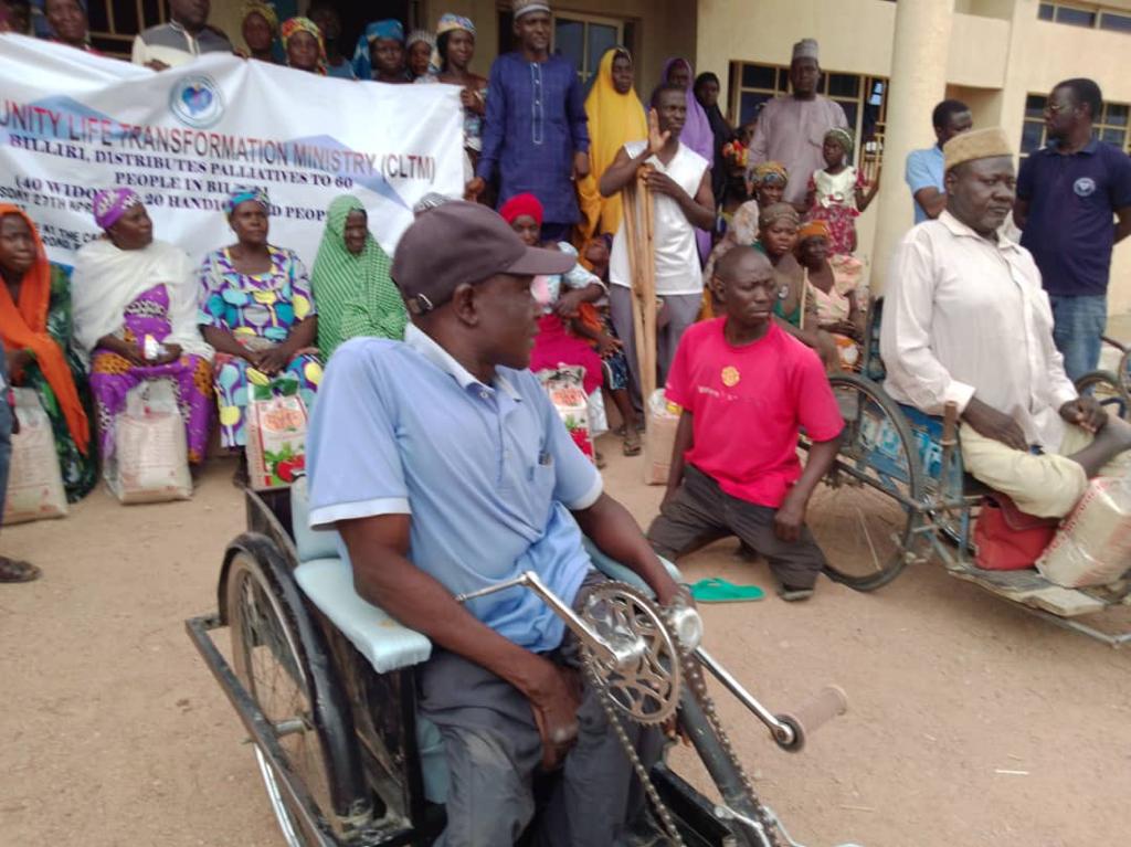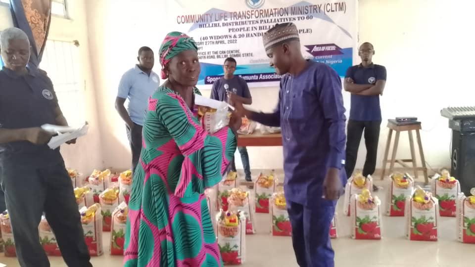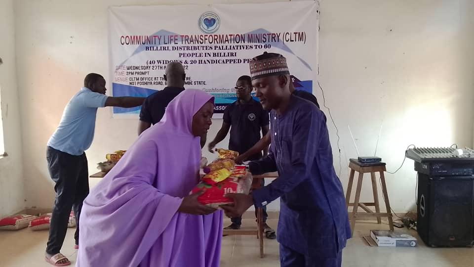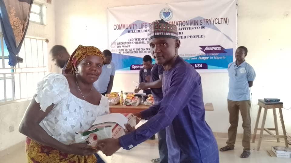The Community Life Transformation Ministry gives out food items to 40 widows and 20 handicapped people in Billiri
